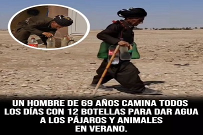 Durante años, Ihsan Muhsin, un hombre Iraquí de 69 años, recorre diariamente kilómetros bajo el sol abrasador de Irak, cargando 12 botellas de agua. Su destino: una zona remota donde aves y animales salvajes luchan por sobrevivir a la sed, Allí, llena bebederos improvisados con constancia y devoción, deposita el agua que se convierte en la diferencia entre la vida y la muerte para muchas de estas criaturas. Lo que comenzó como un simple gesto de bondad se transformó en un ritual sagrado que le llena de alegría y propósito.